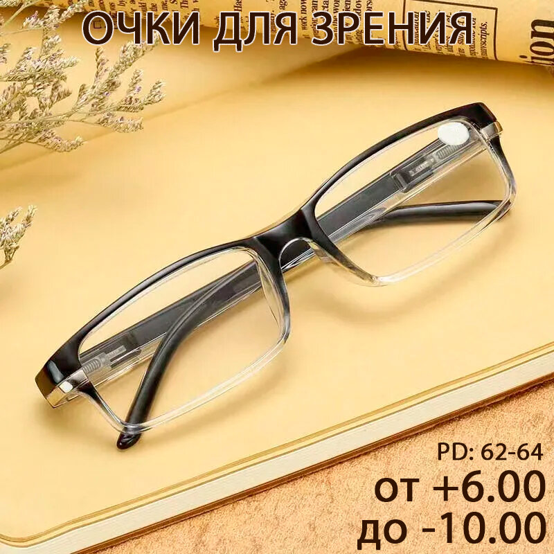 10 цен на Очки для зрения корригирующие унисекс. флекс. чёрно-прозрачные pd62-64 -4.00