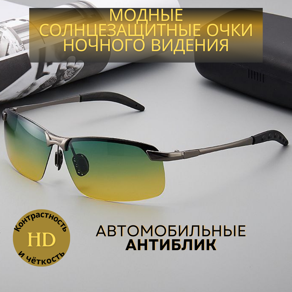 Отзывы на Очки антибликовые для водителя, очки мужские, женские для ночного вождения. Очки против бликов в машину с желто зелеными линзами