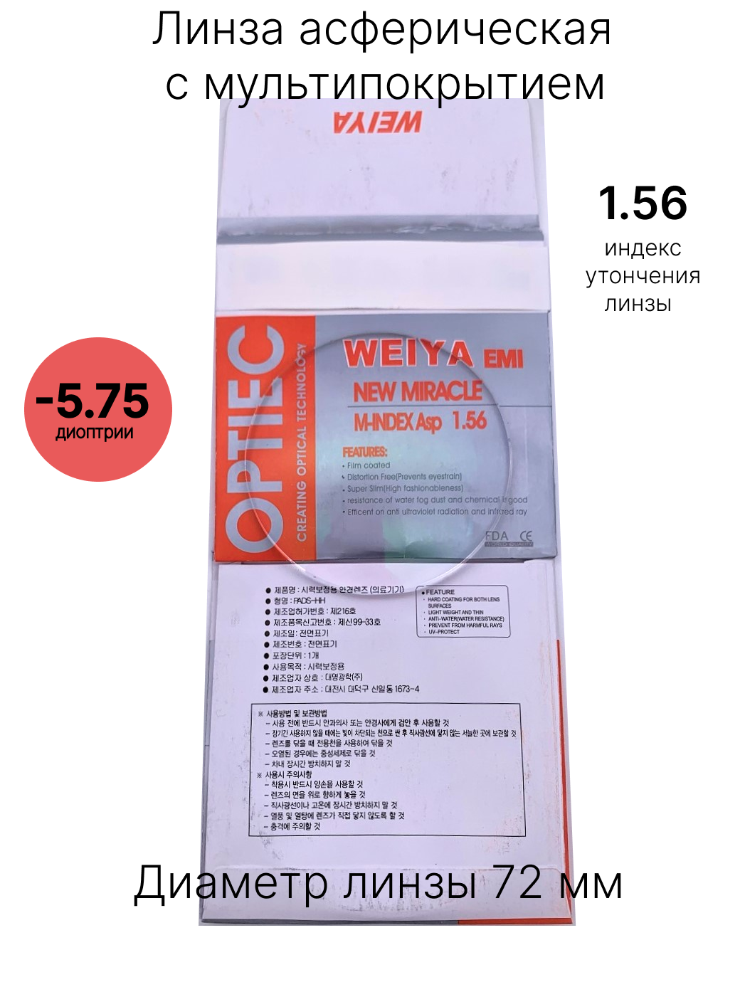 Линзы для очков -5,75 с индексом утончения 1,56 информация: