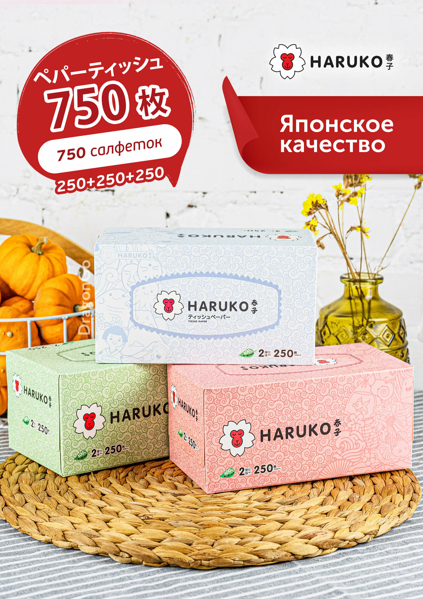 Салфетки бумажные в коробке, 3 пачки по 250 шт., 2 слоя 750 салфеток, коллекция Аниме, Японское качество информация: