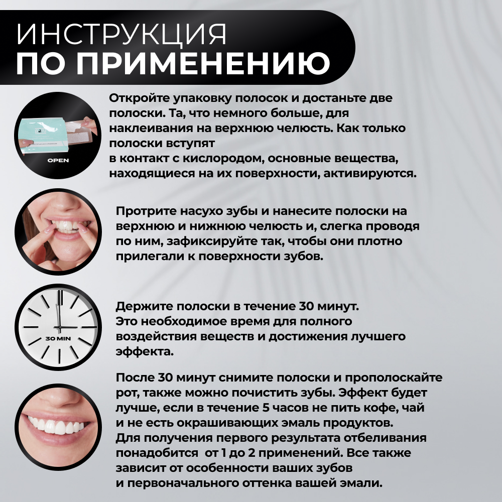 | Дополнительная информация | Для достижения максимального эффекта используйте полоски 2 раза в день после чистки зубов |