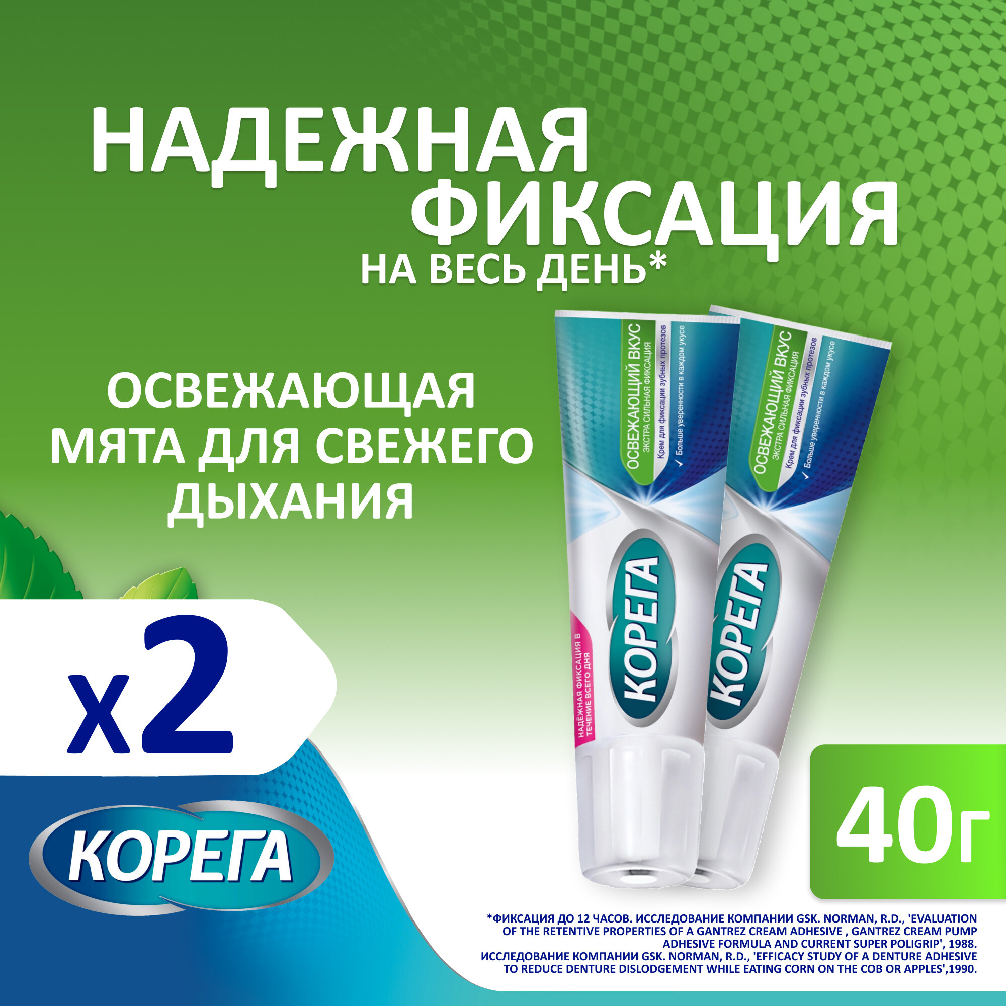 10 цен на Корега Освежающий Вкус крем для всесторонней фиксации съемных зубных протезов с ультрасвежим мятным вкусом, 40 г*2 шт