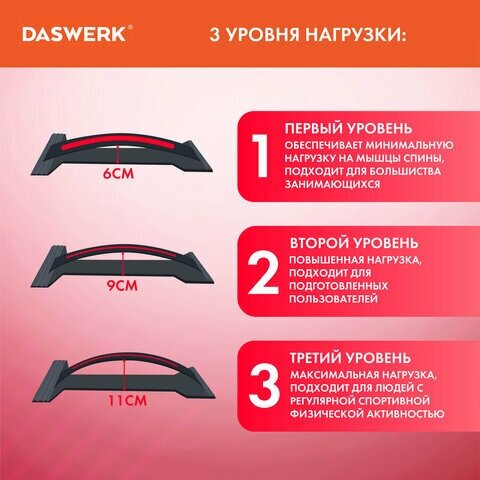 10 цен на Комплект 3 шт, Массажер для спины/мостик для растяжки PREMIUM, 3 уровня нагрузки, красная вставка, DASWERK, 680034
