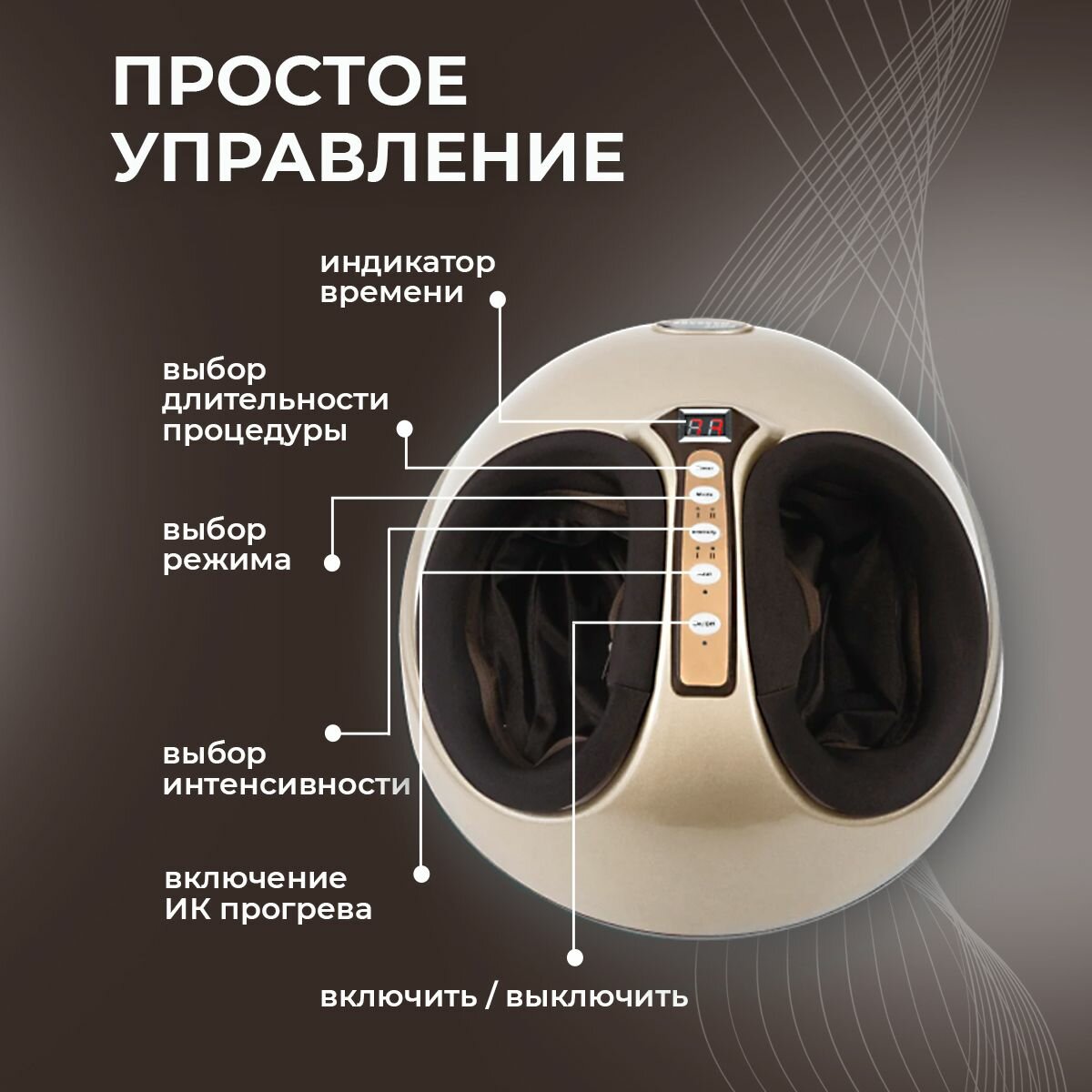 Массажер для ног электрический, роликовый, воздушно-компрессионный с прогревом, 4 программами массажа, 2 мотора СМ2709 золотой информация: