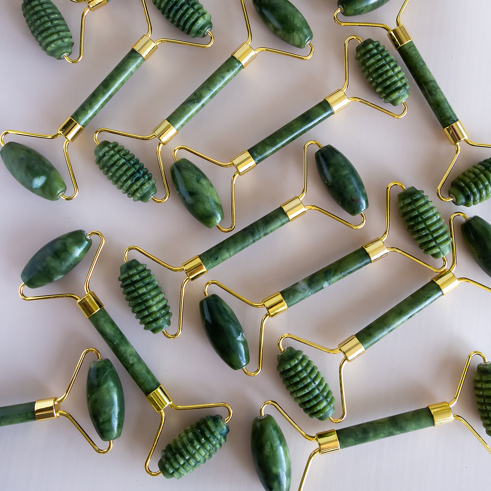 Ролик и скребок гуаша массажные из светло-зеленого нефрита (набор). Роллер и скребок нефритовые для массажа лица и тела. Подарок девушке на День влюбленных и 8 Марта 590 ₽