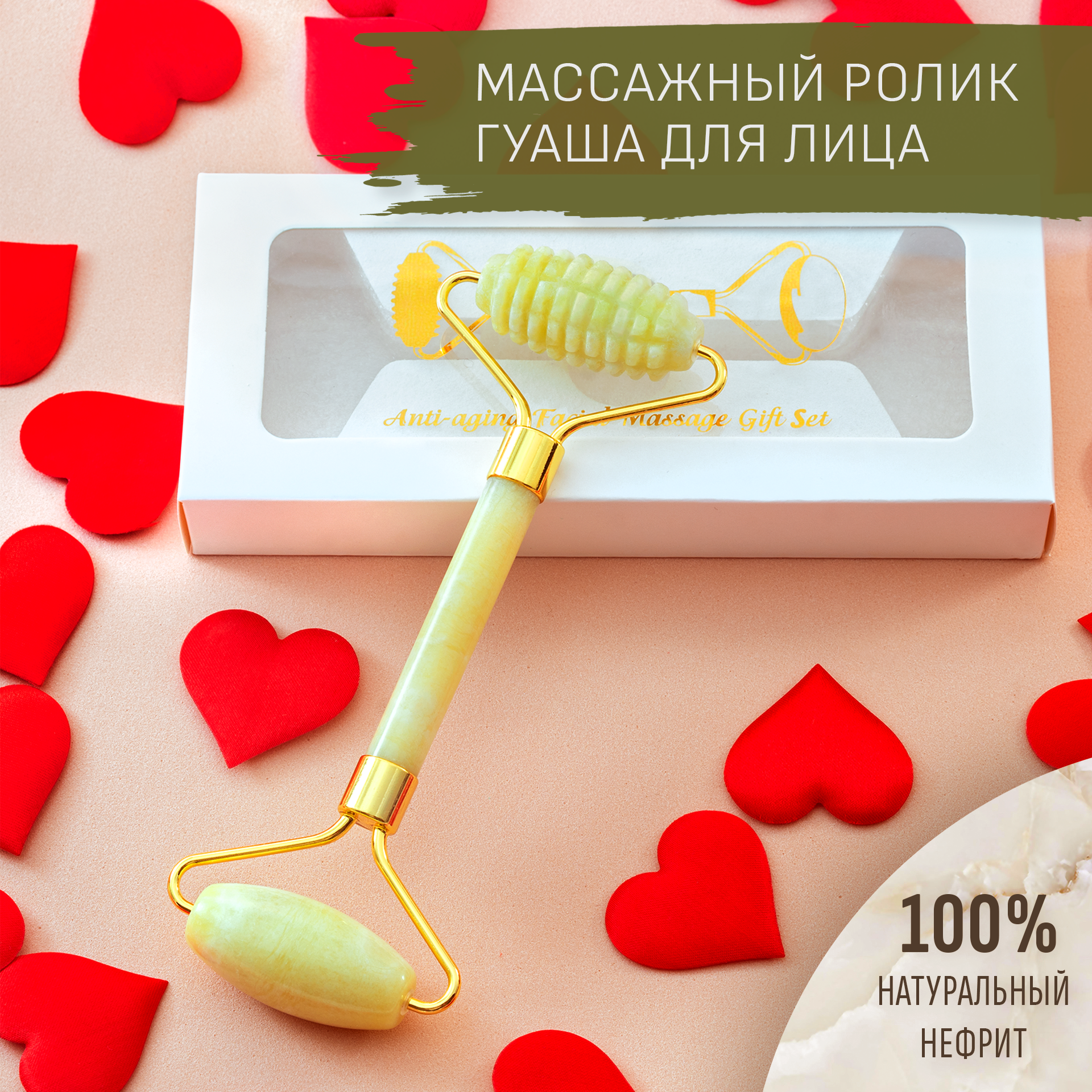 10 цен на Ролик Гуаша массажный из лимонного нефрита. Роллер нефритовый для массажа лица и тела. Подарок девушке и женщине на день рождения