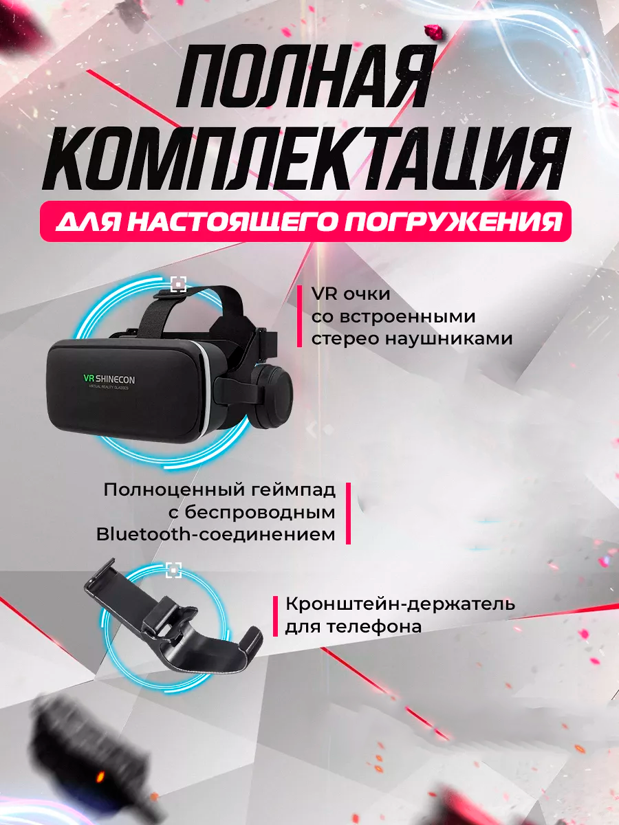 Shinecon Очки виртуальной реальности VR Shinecon G04DBS с геймпадом Terios (VR очки + джойстик Terios)