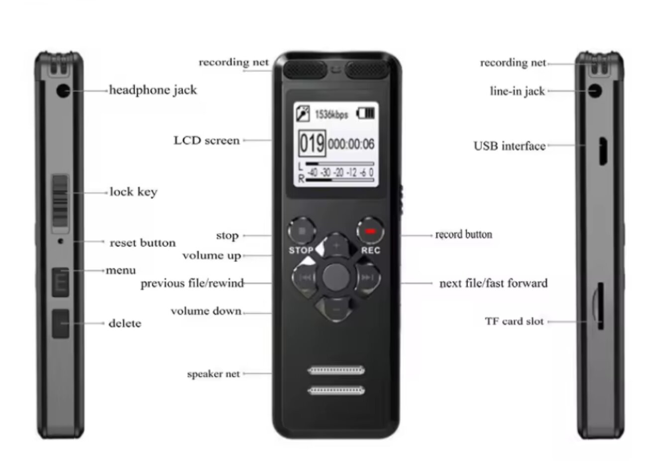 | Функции | ЖК-дисплей, блокировка кнопок, встроенные часы, встроенный динамик, защита паролем, пауза, функция активизации по голосу |