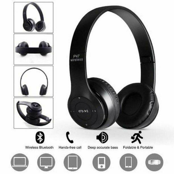 Отзывы на Беспроводные наушники P47 Bluetooth 5.0 EDR Wireless с микрофоном, FM-радио, с поддержкой SD-карты памяти (Mp3-плеер) черный