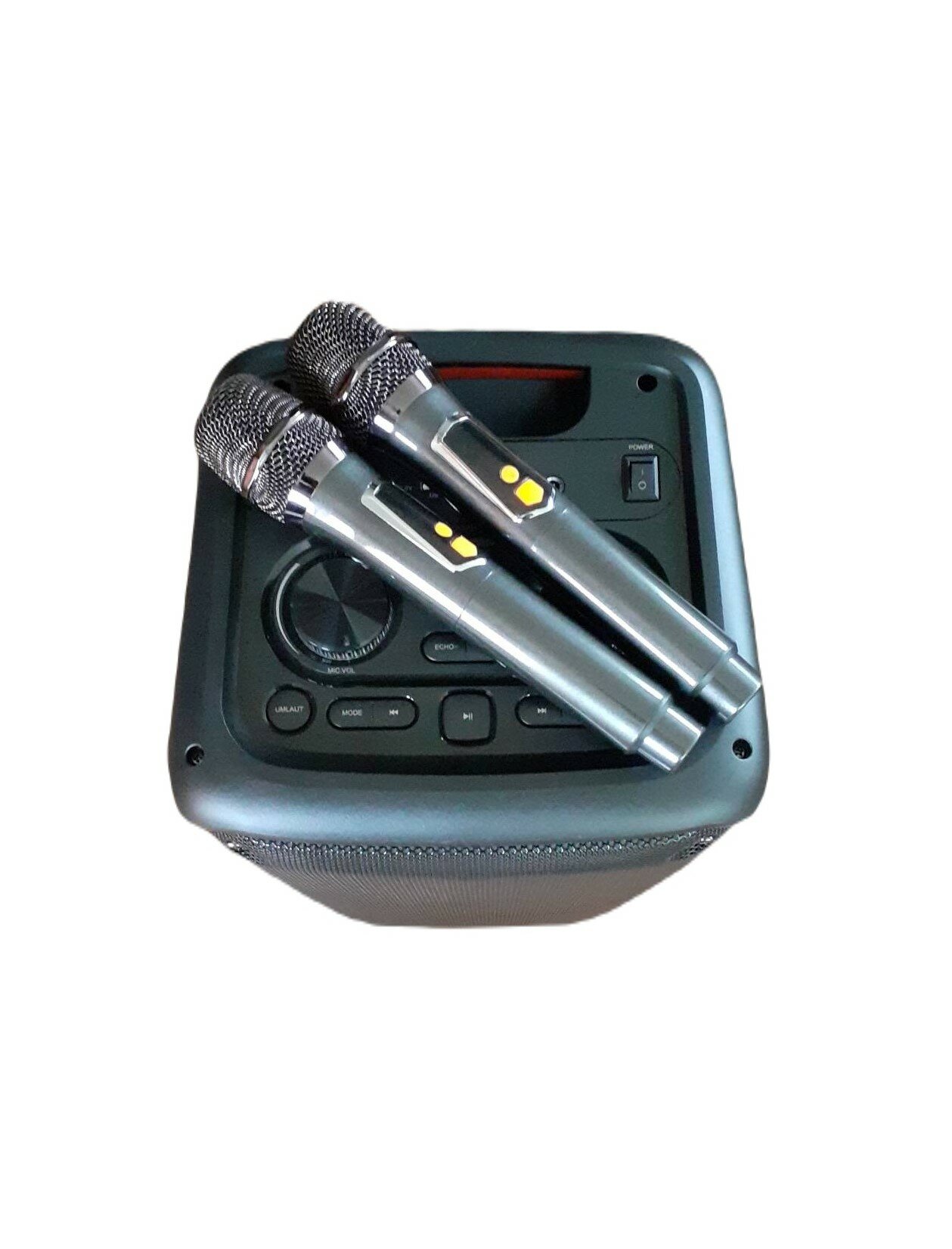 Портативная колонка караоке 2 микрофона с подсветкой