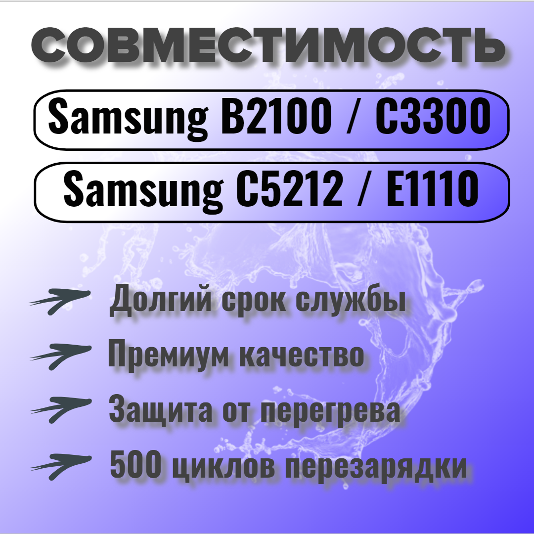 | Совместимые модели | Samsung C5212 / Samsung Champ C3300 / Samsung DuoS C3212 / Samsung Duos E2152 / Samsung E1170 / Samsung E1252 / Samsung E2202 / Samsung E2232 / Samsung GT-C3212 Duos / Samsung GT-C3300 Champ / Samsung GT-C5212 / Samsung GT-E1170 / Samsung GT-E1252 / Samsung GT-E2152 / Samsung GT-E2202 / Samsung GT-E2232 |