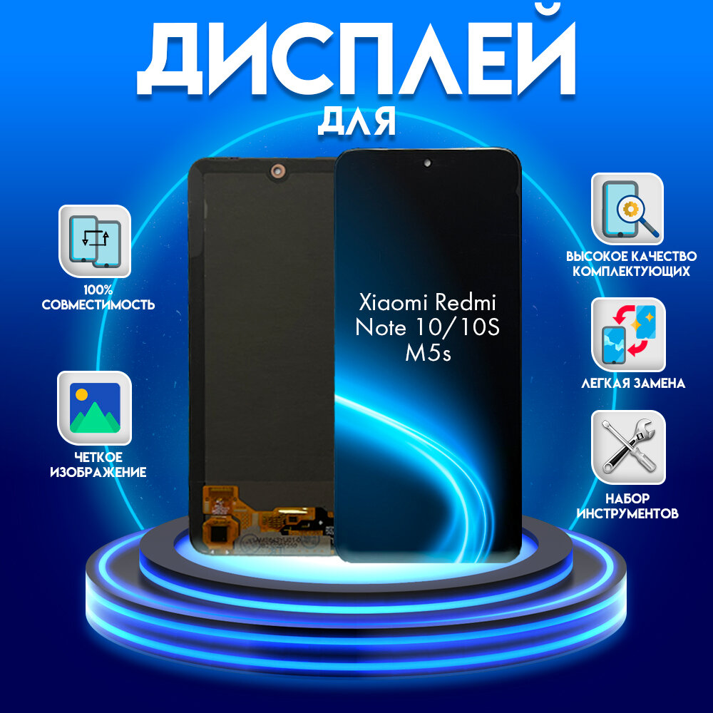 Дисплей для Xiaomi Redmi Note 10 Xiaomi Redmi Note 10S Xiaomi Redmi M5s Amoled + клей + набор инструментов, черный информация: