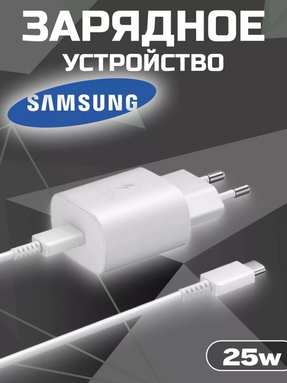 Адаптер для Samsung 25W USB-C + Кабель Type-C (3A), быстрая зарядка, белый информация: