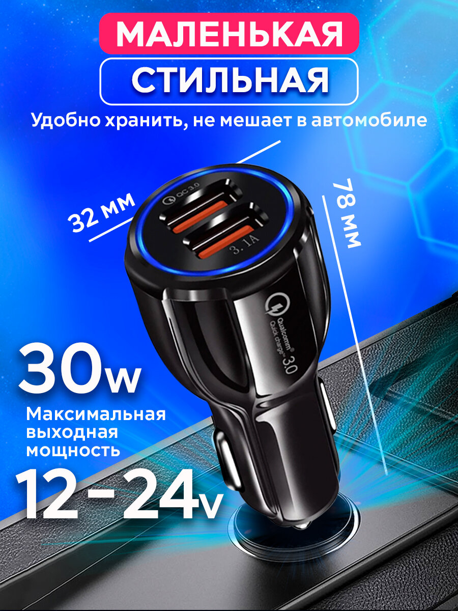10 цен на Автомобильное зарядное устройство в прикуриватель 2USB х 3.1А с кабелем Type-C 1м, быстрая зарядка, аптер питания