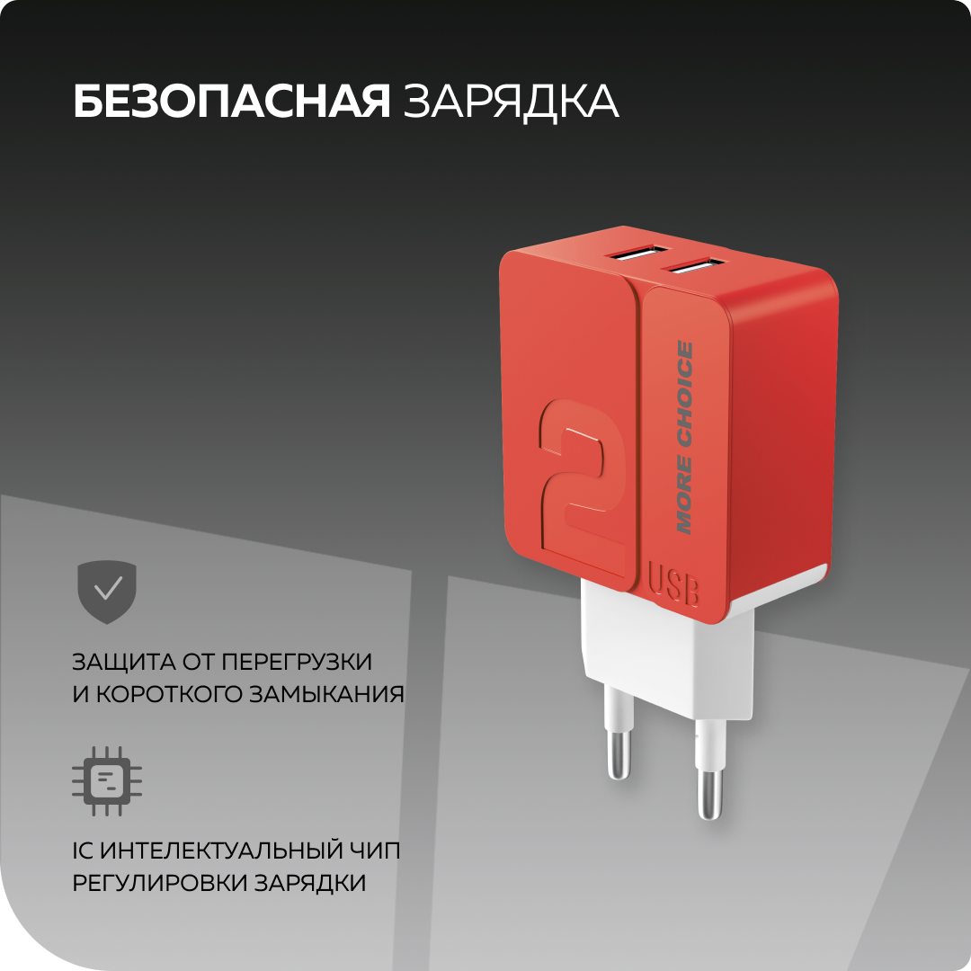 Сетевое зарядное устройство 2USB 2.4A More choice NC46 Red информация: