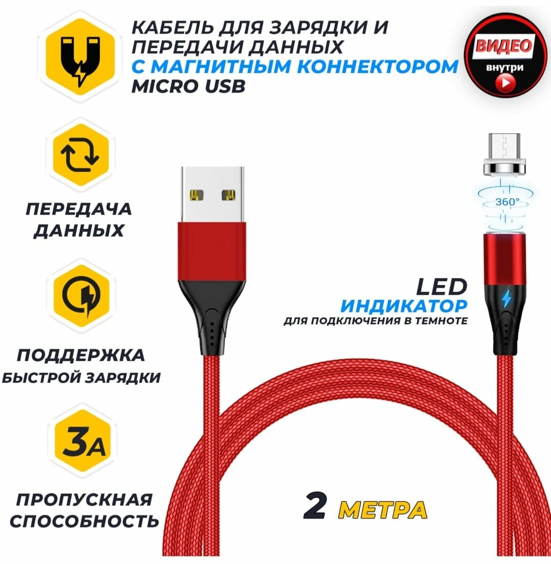 Кабель 2м Red 3A Micro USB для магнитной зарядки информация: