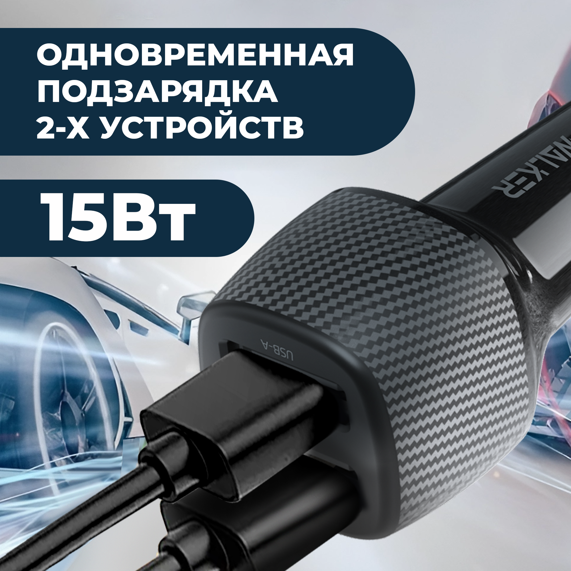 Зарядка в прикуриватель, WALКЕR, WCR-31, 15Вт, USBx2, зарядка в автомобиль, зарядка для айфона, зарядка для телефона, зарядное устройство, черное 296 ₽