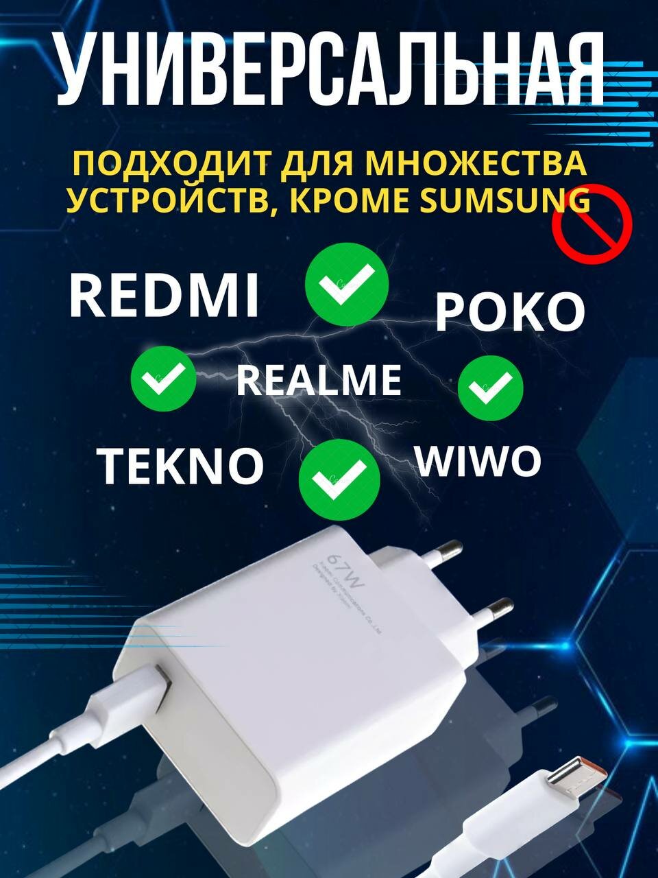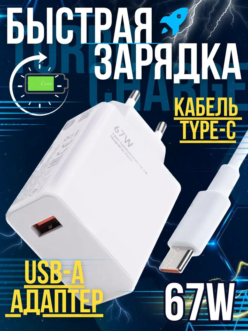 Быстрая зарядка type-c 67w информация:
