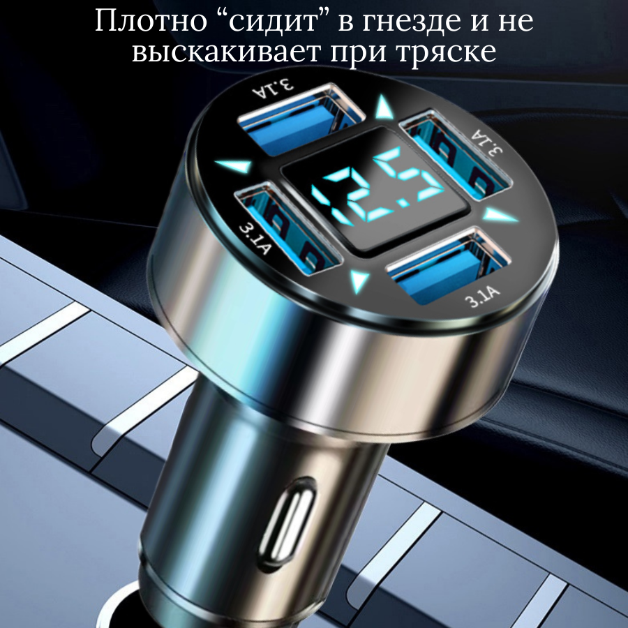 Отзывы на Автомобильная зарядка 3.1А 4хUSB с вольтметром для телефона в прикуриватель