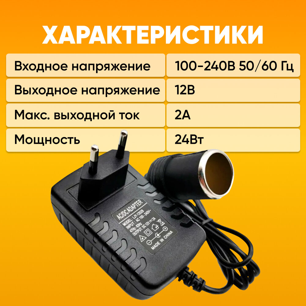 Адаптер сетевой с гнездом прикуривателя 220В, 12В, 2 А / Блок питания с разъемом для автомобиля, черный 220В/12В / Преобразователь напряжения информация: