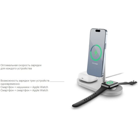 | Конструкция беспроводного устройства | для 1 телефона / зона для Apple Watch / зона для беспроводных наушников / зона для умных часов |
