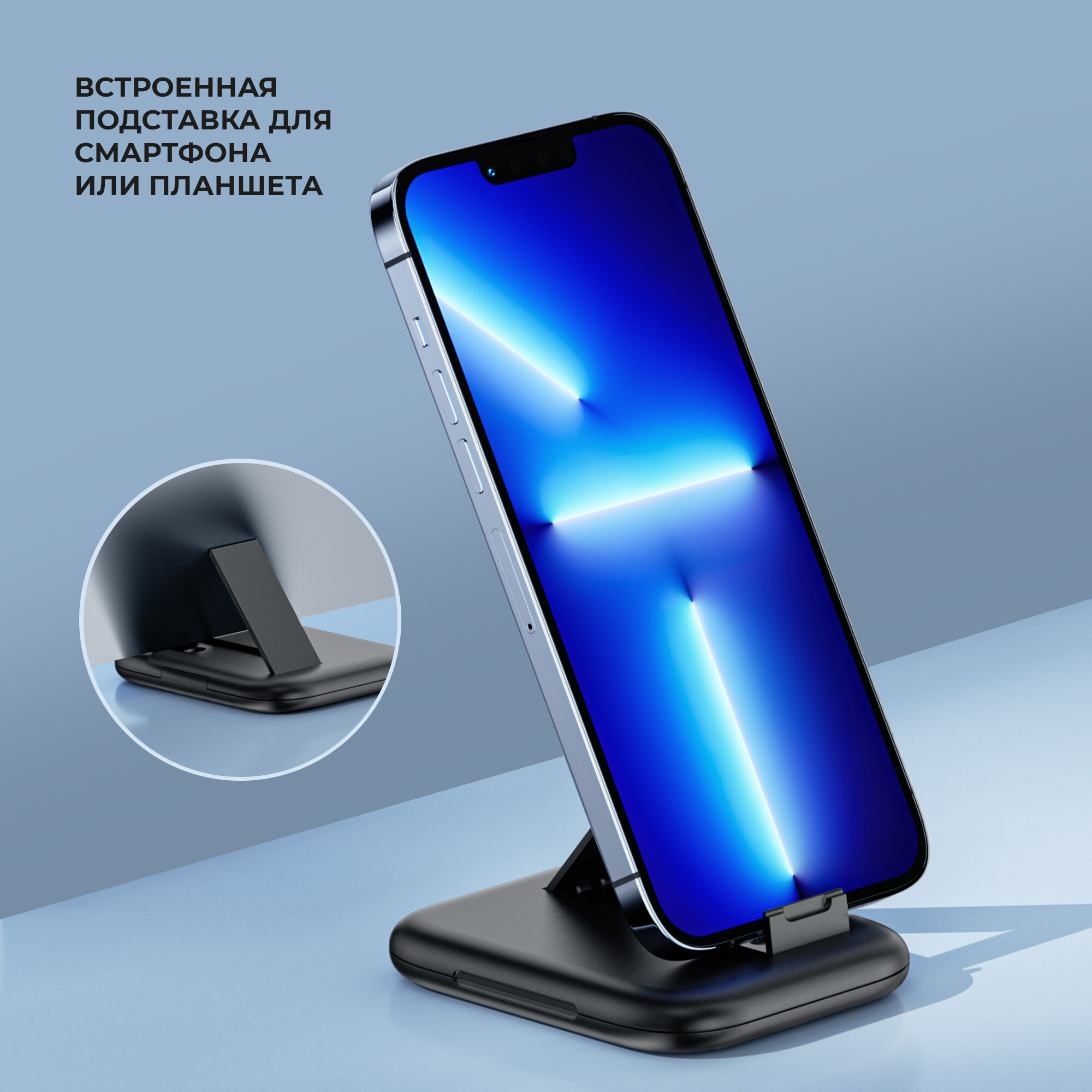 Беспроводная зарядная станция 3 в 1 MagSafe Rotation QI складная, графит, Deppa, Deppa 23161