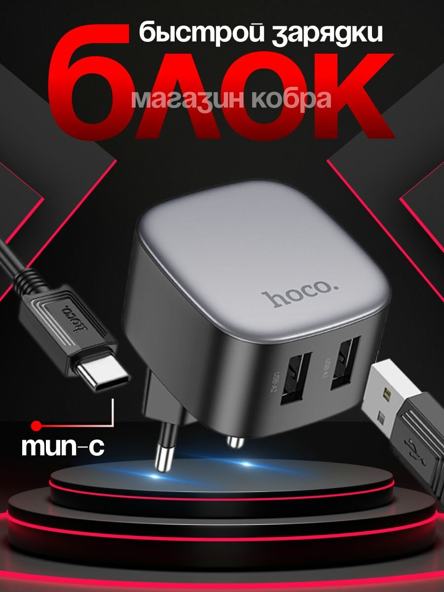 Блок питания для телефона с быстрой зарядкой 65W (Type C + USB) Hoco C113A 1 257 ₽