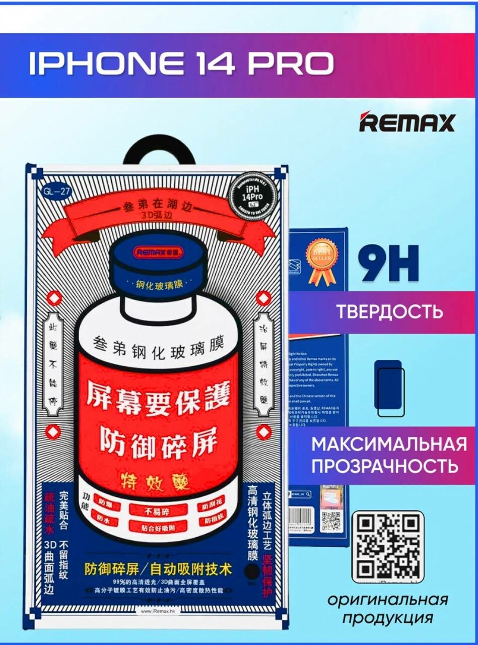 Защитное стекло Remax для Apple iPhone 14 Pro (6.1"), 3D (GL-27), Lake Series, Твердость 9H, 0.3mm информация:
