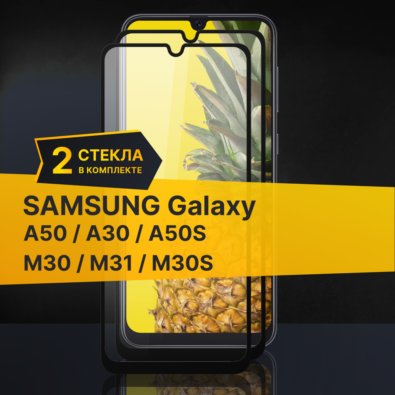 Комплект 2 шт. Противоударное защитное стекло для телефона Samsung Galaxy A30, A50, M30, M30S, M31 и A50S / Полноклеевое 3D стекло с олеофобным покрытием на смартфон Самсунг Галакси А30, А50, М30, М30С, М31 и А50С / С черной рамкой информация: