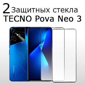 2 комплекта Стекло защитное противоударное для TECNO Pova Neo 3 Черная рамка информация: