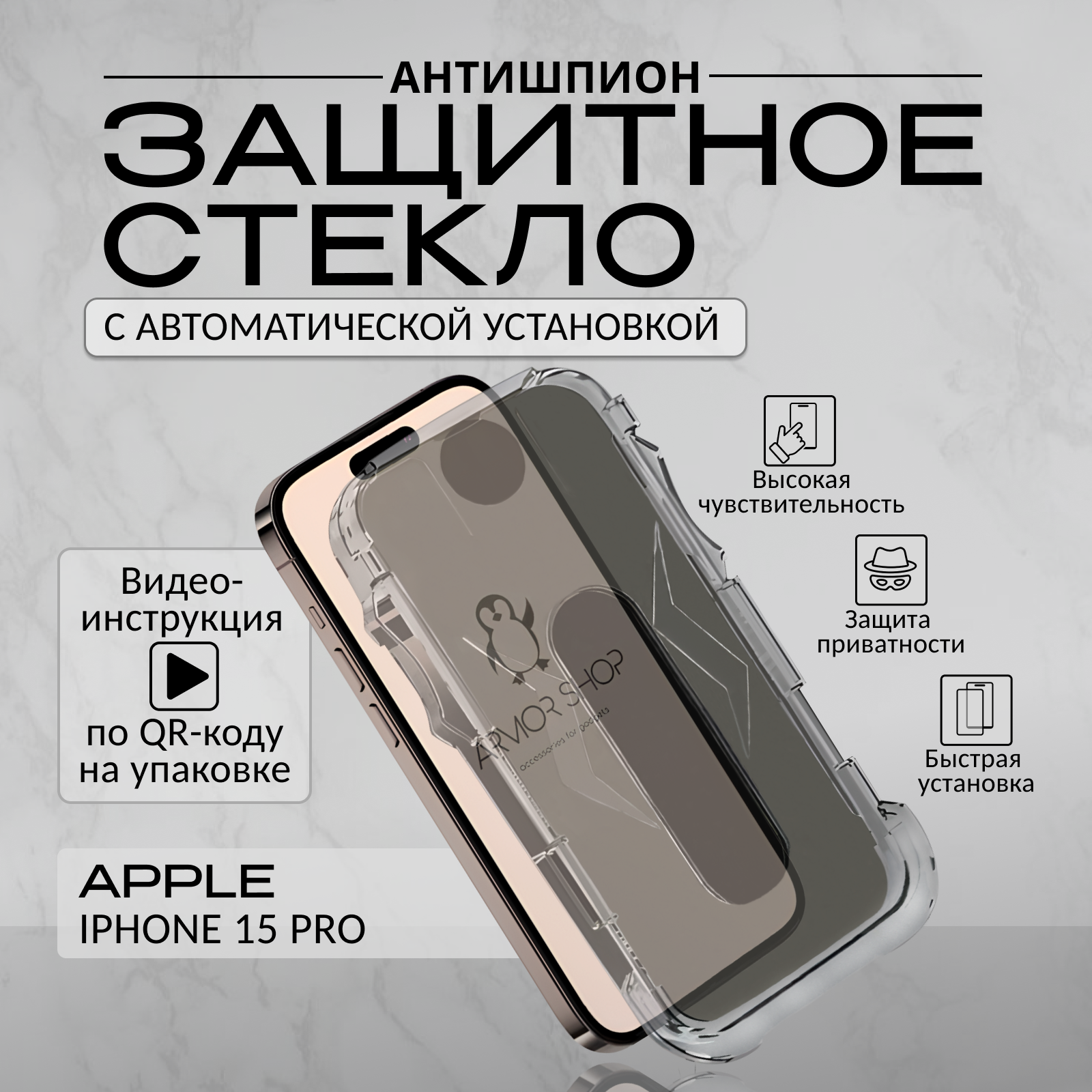 10 цен на Защитное стекло с "автоматической" установкой для iPhone 15 Pro, антишпион