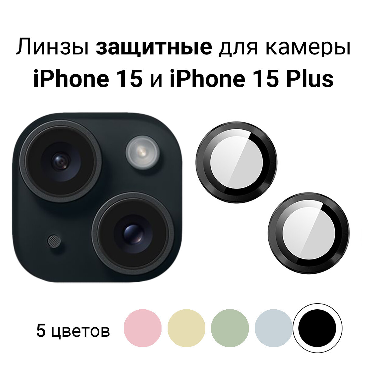 Линзы (стекла) для защиты камеры iPhone 15 / 15 Plus Черные информация: