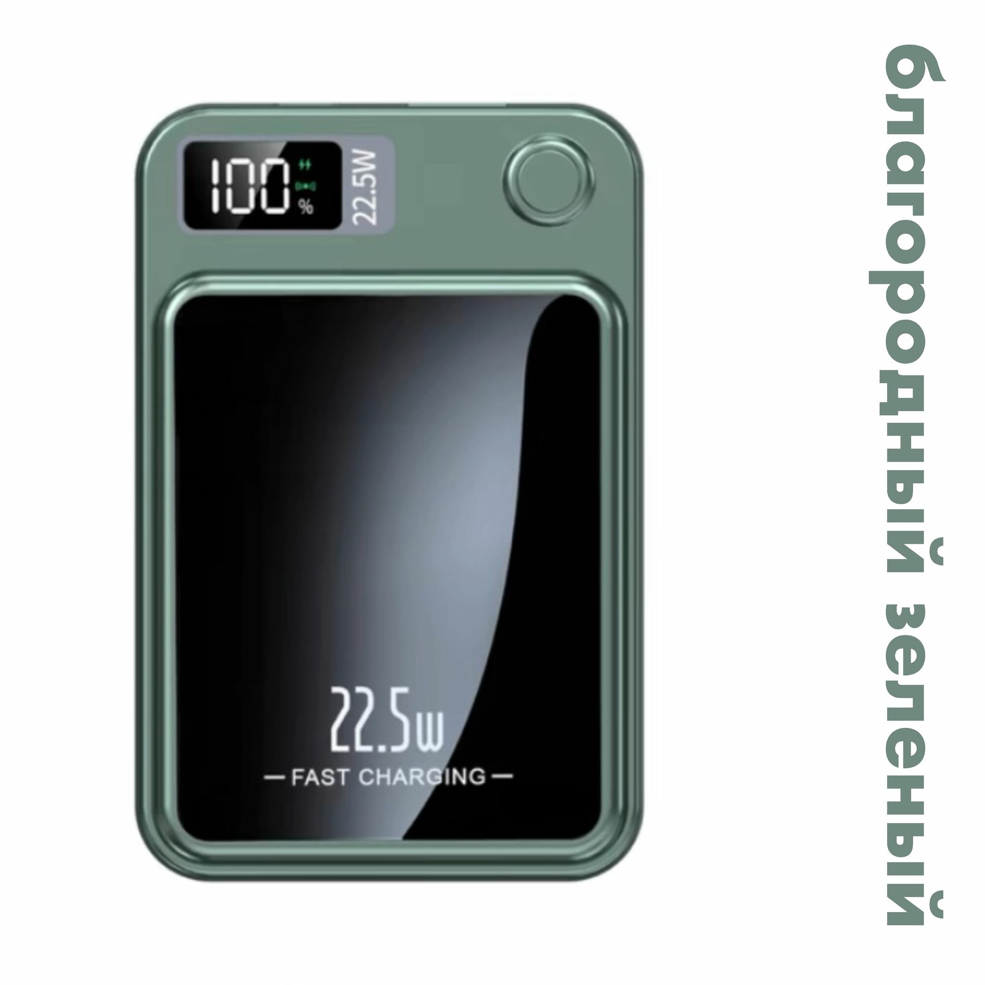 Отзывы на Внешний аккумулятор Power bank 10000 mAh 5V/3A/22.5W, с функцией беспроводной зарядки, с магнитным креплением и индикатором заряда. цвет зеленый