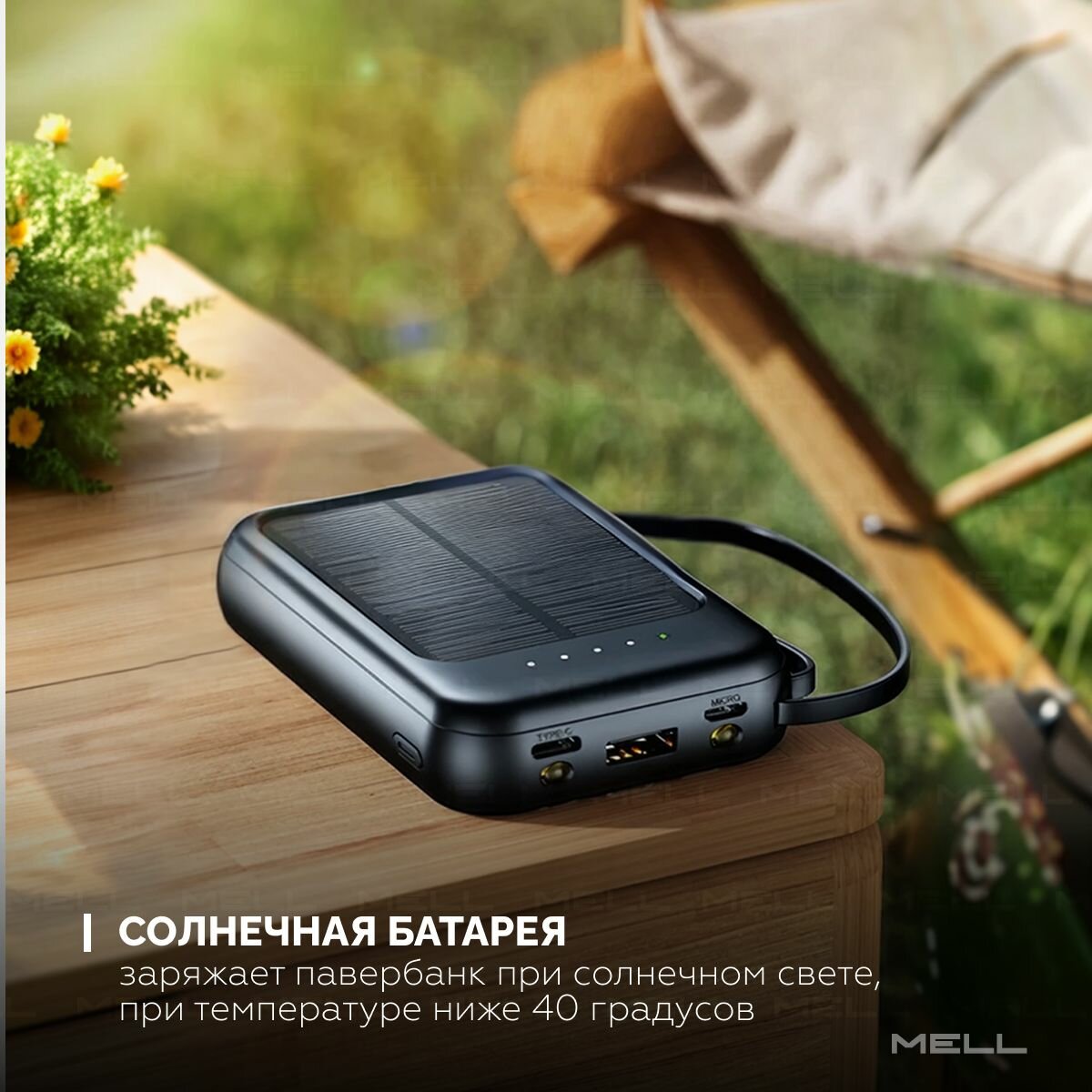 Отзывы на Повербанк 20000mah MELL с солнечной панелью / pover bank портативный с кабелями type c, lightning и micro USB