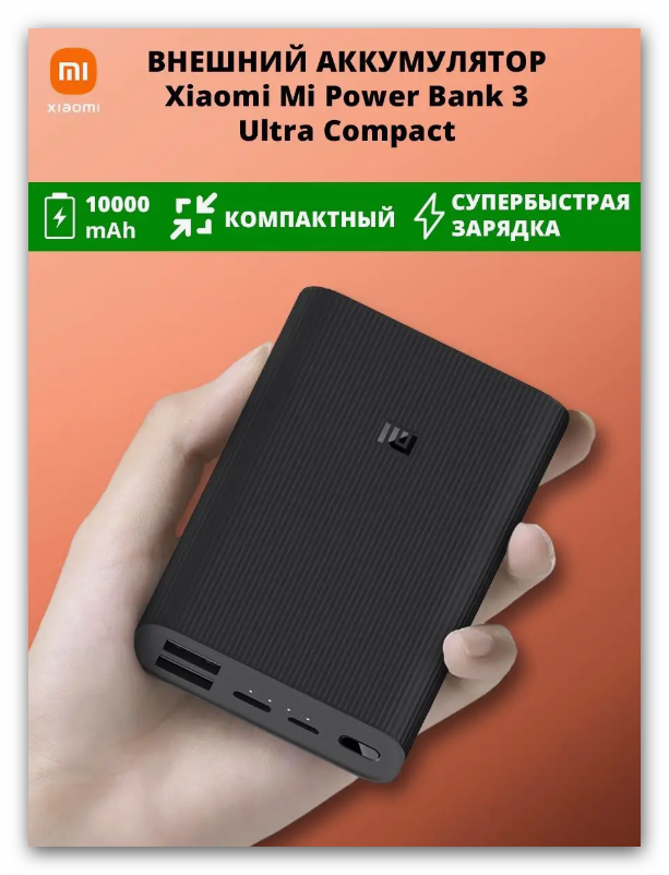 Внешний аккумулятор Mi Power Bank 3 Ultra Compact 10,000 mah информация: