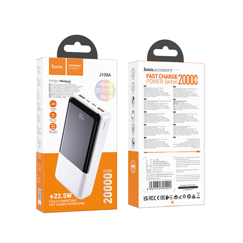 Hoco Power Bank J108A Universe 20000mAh White 6931474791221 информация:
