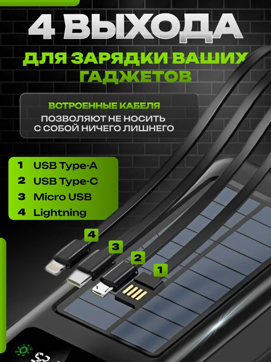 Повербанк, 30000 мАч / Power Bank, 30000 mAh / со встроенными кабелями Usb, Lightning, Type-C, Micro usb