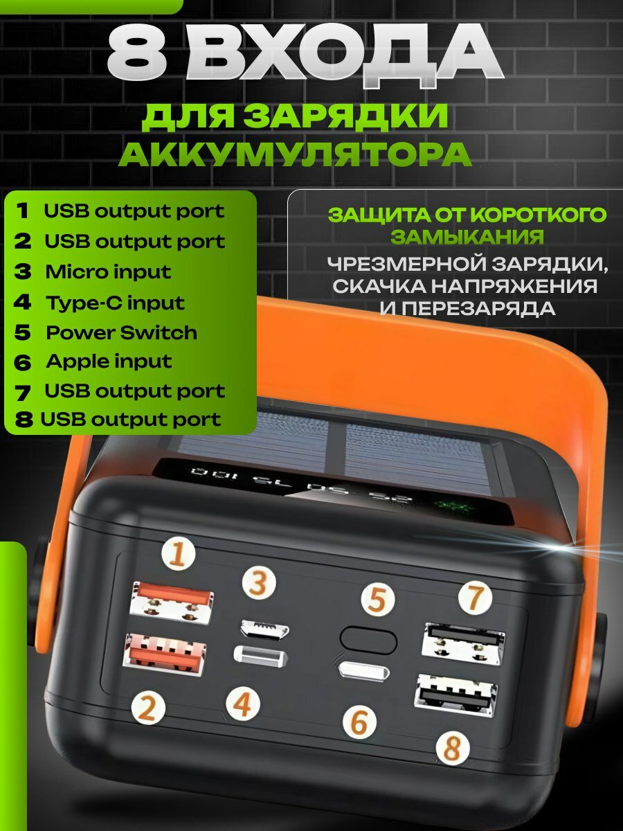 Повербанк с быстрой зарядкой, солнечной батареей и фонариком информация: