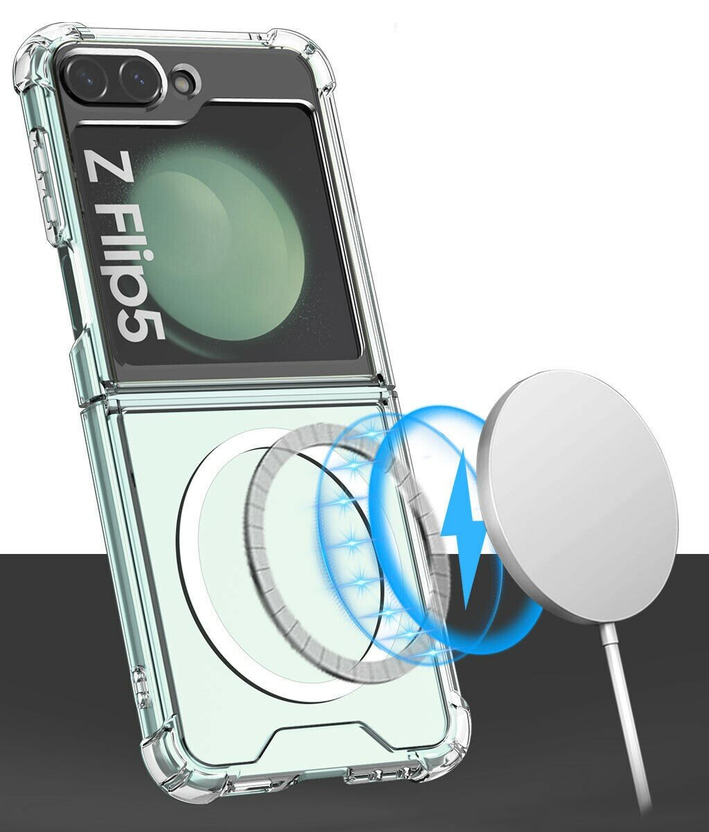 Чехол для Samsung Galaxy Z-Flip 5 Magsafe противоударный с поддержкой беспроводной зарядки, прозрачный информация: