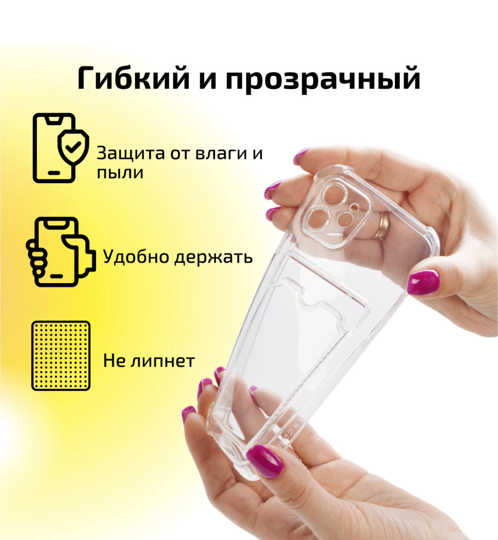 Отзывы на AV-Retail / Чехол силиконовый прозрачный с карманом для карт на iPhone 12 / Чехол усиленный противоударный