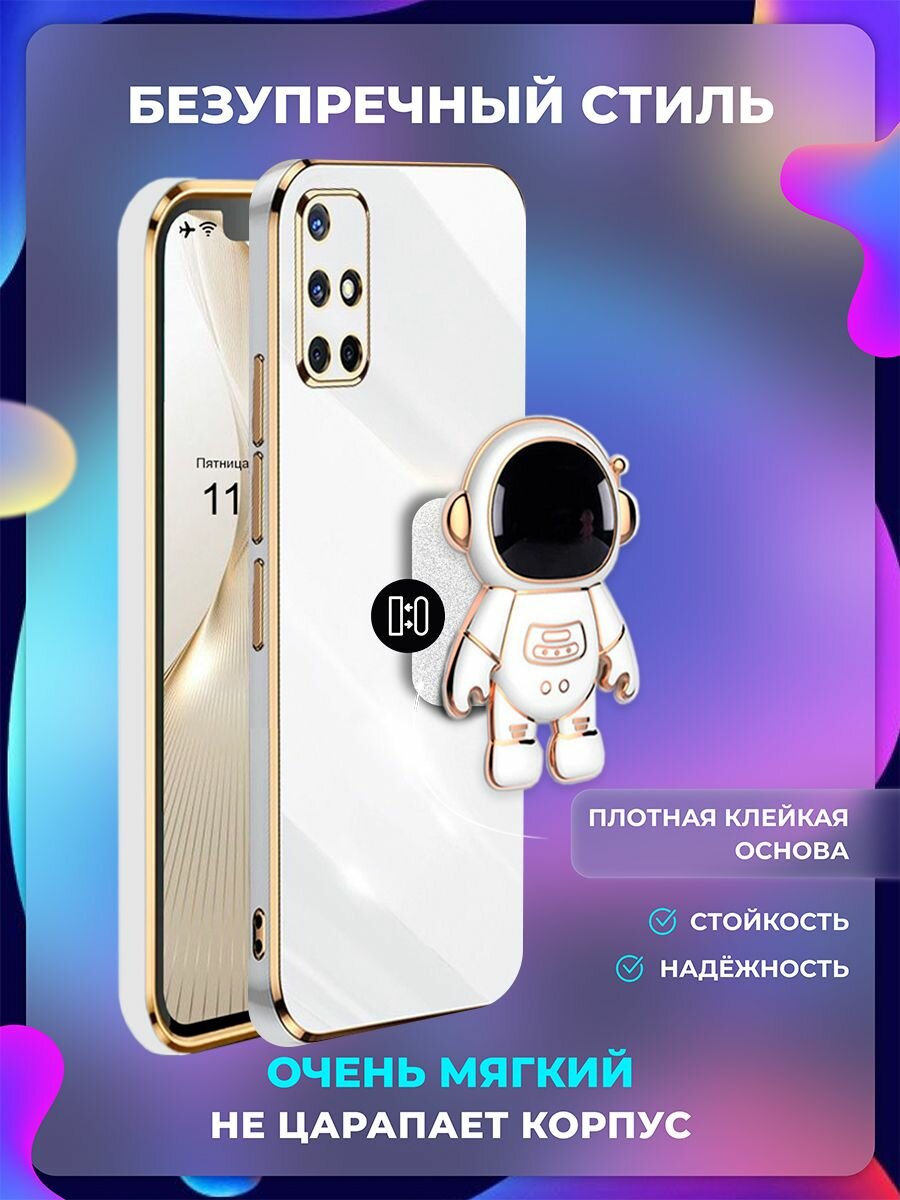 10 цен на Чехол на Samsung Galaxy A51 защитный бампер с подставкой-попсокетом Космонавт на Самсунг Галакси A51 Белый