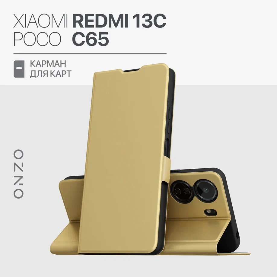 Отзывы на Чехол книжка для Xiaomi Redmi 13C/POCO C65 / Редми 13С/Поко С65 из искусственной кожи, с карманом, золотой