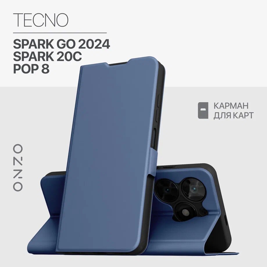 10 цен на Чехол на Tecno Spark Go 2024 / POP 8 / Spark 20C книжка с функцией подставки и с карманом, синий