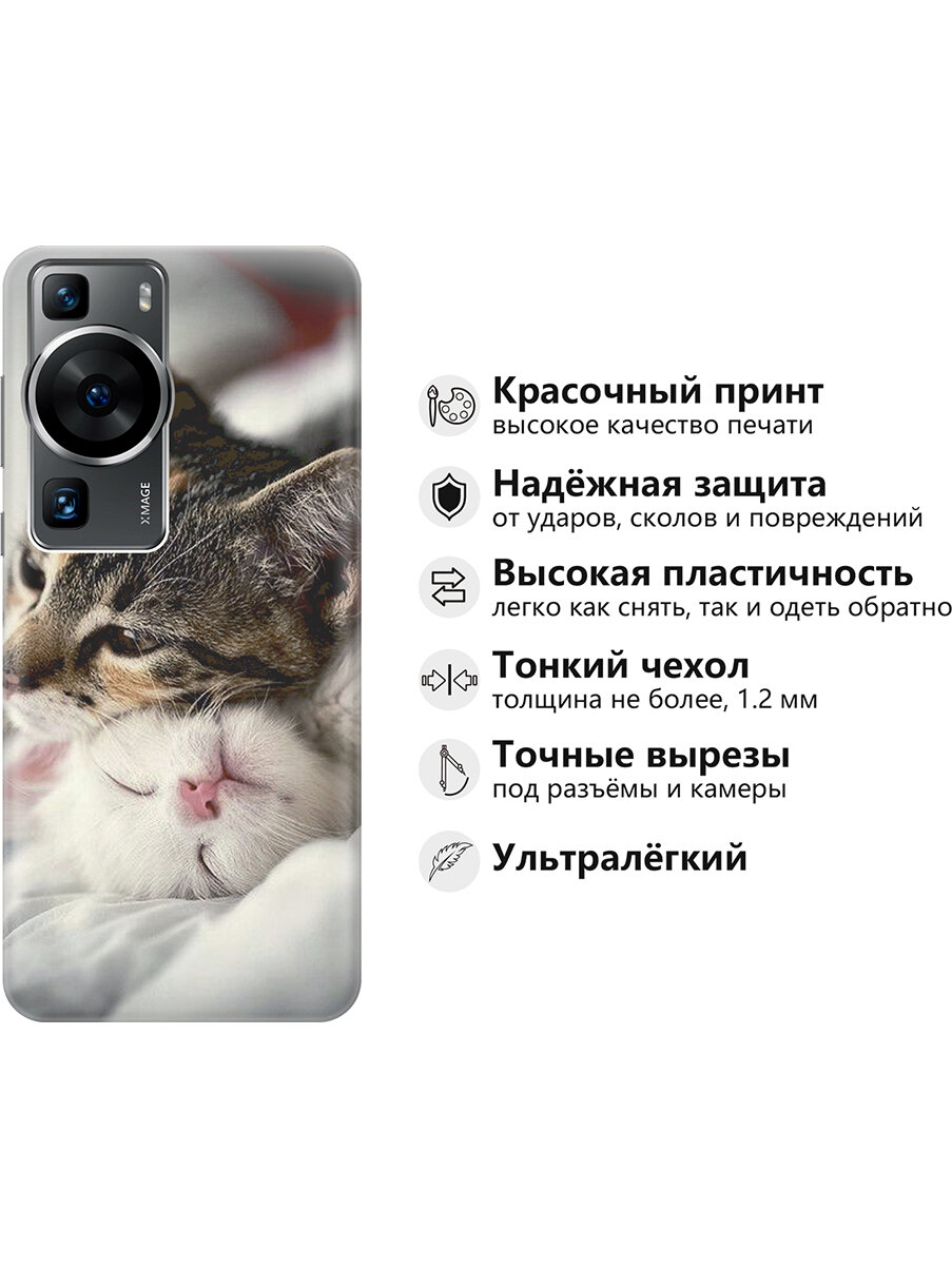 Силиконовый чехол на Huawei P60, Хуавей П60 с принтом "Милые котики" информация: