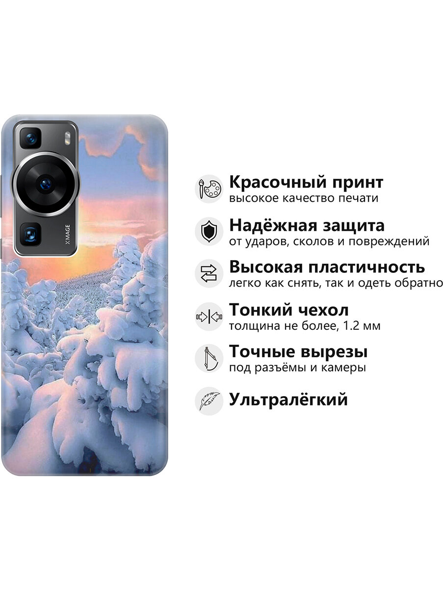 Отзывы на Силиконовый чехол на Huawei P60, Хуавей П60 с принтом "Заснеженный лес"