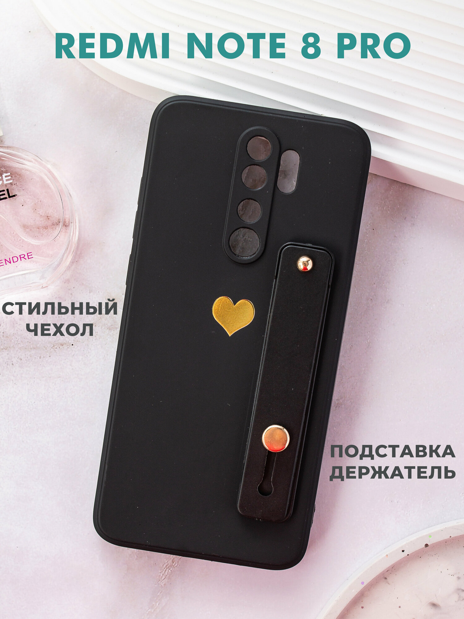 Чехол на Redmi Note 8 Pro силиконовый защитный бампер с подставкой на Редми Нот 8 Про Черный информация: