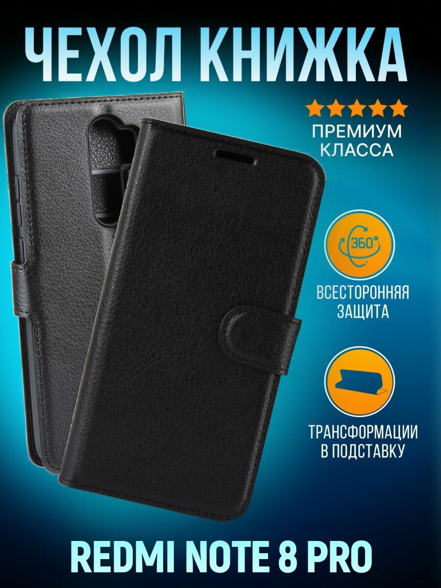 Чехол на redmi note 8 pro противоударный чехол-книжка с отделением для карт на Редми нот 8 Про черный информация: