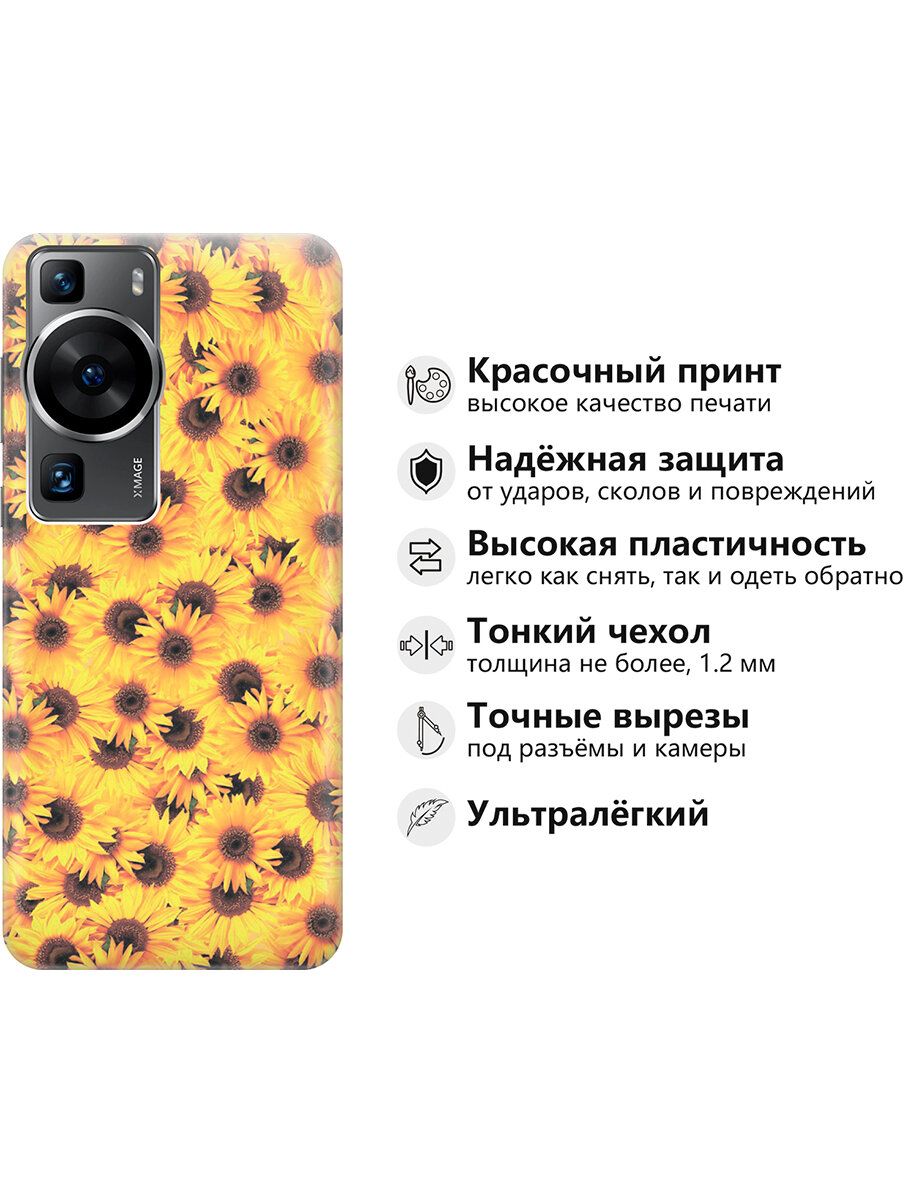 10 цен на Силиконовый чехол на Huawei P60, Хуавей П60 с принтом "Букет подсолнухов"