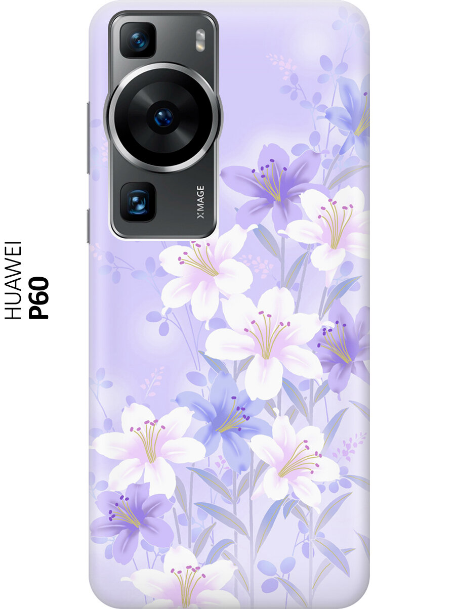 10 цен на Силиконовый чехол на Huawei P60, Хуавей П60 с принтом "Лилии на фиолетовом"