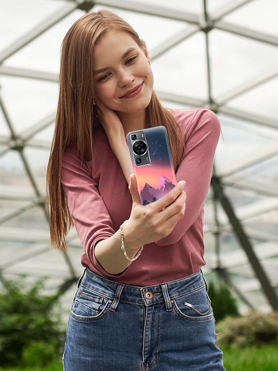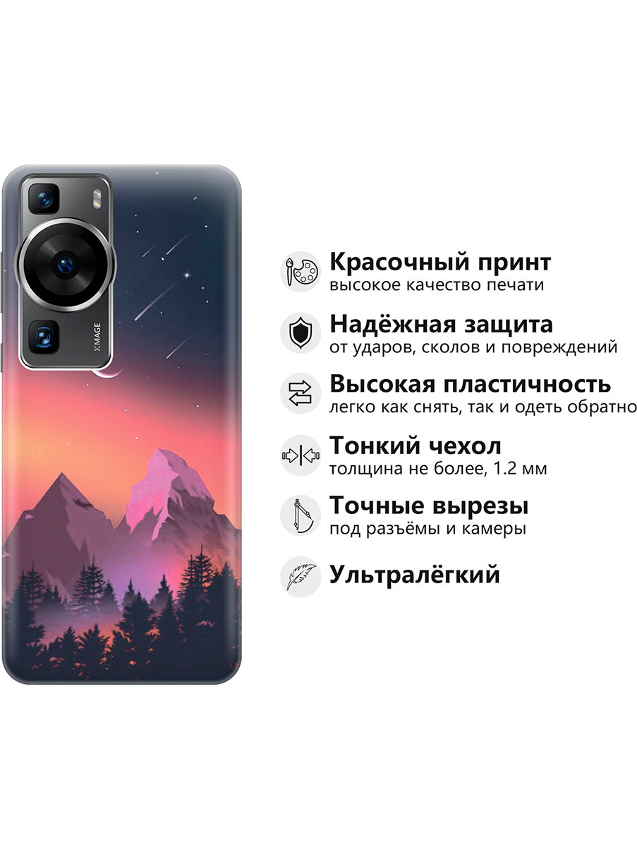 10 цен на Силиконовый чехол на Huawei P60, Хуавей П60 с принтом "Горы и звездопад"